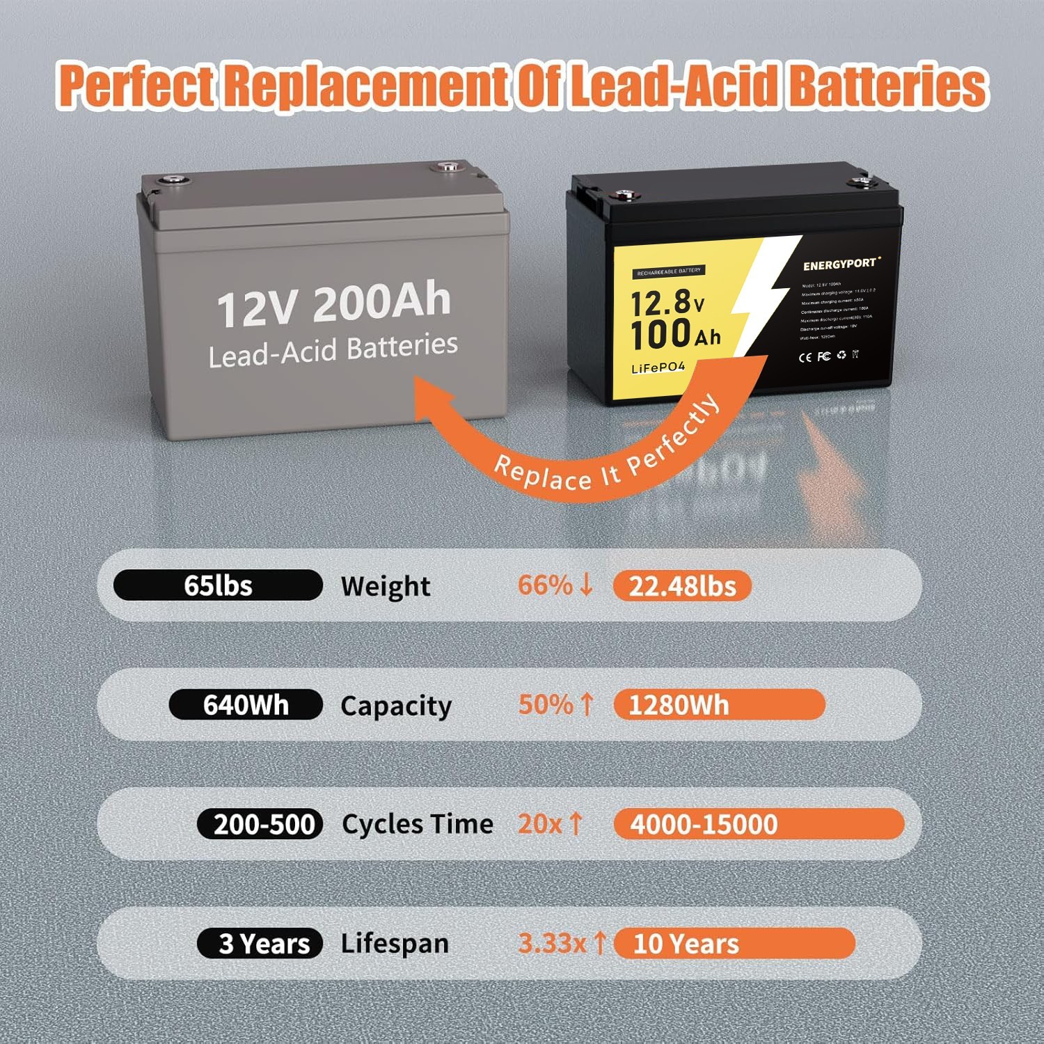 12V 100Ah LiFePO4 Battery Group 31 Built-in 100A BMS Deep Cycle For RV Home