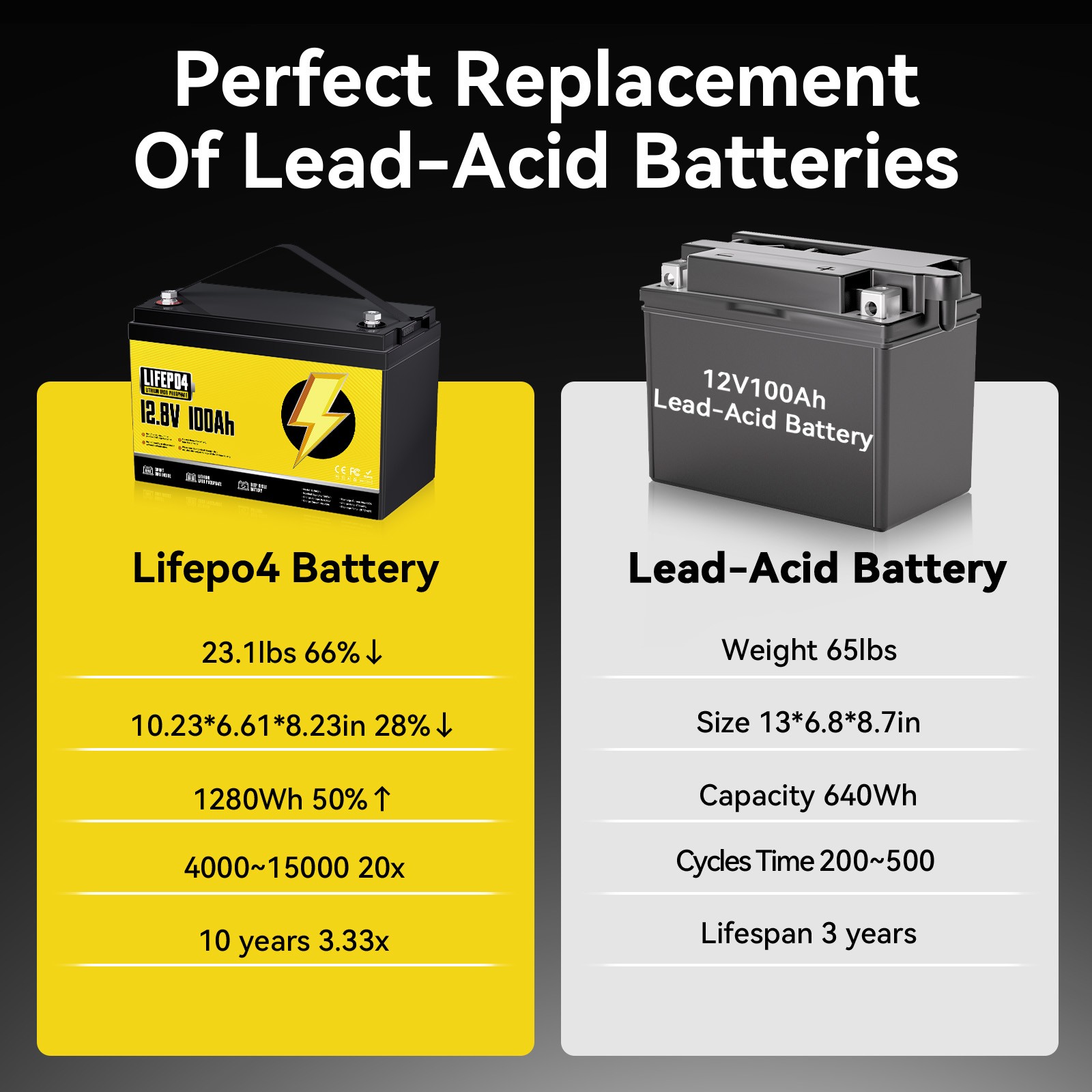 12V 100Ah LiFePO4 Lithium Battery Deep Cycles RV Marine Trolling Motors Off-grid