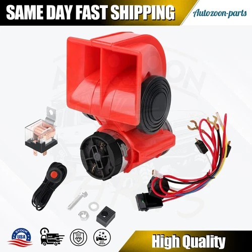 12V Air Horn with Compressor Automotive Relay Snail Horn (12v,red with switch)
