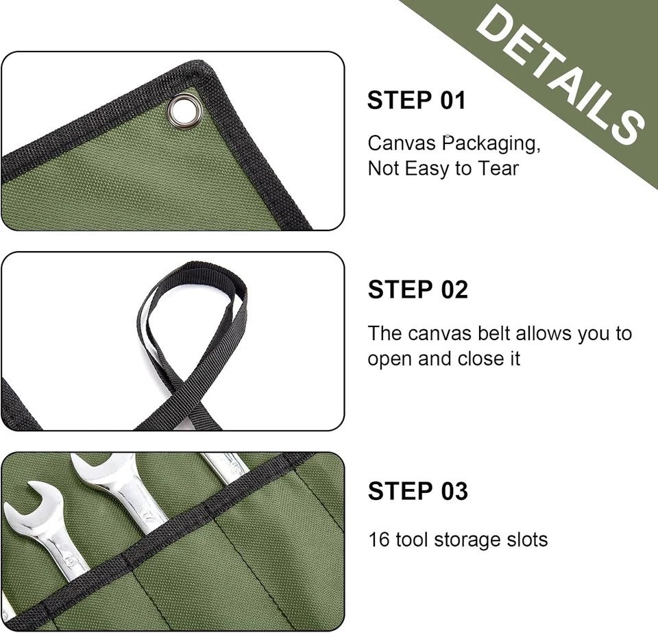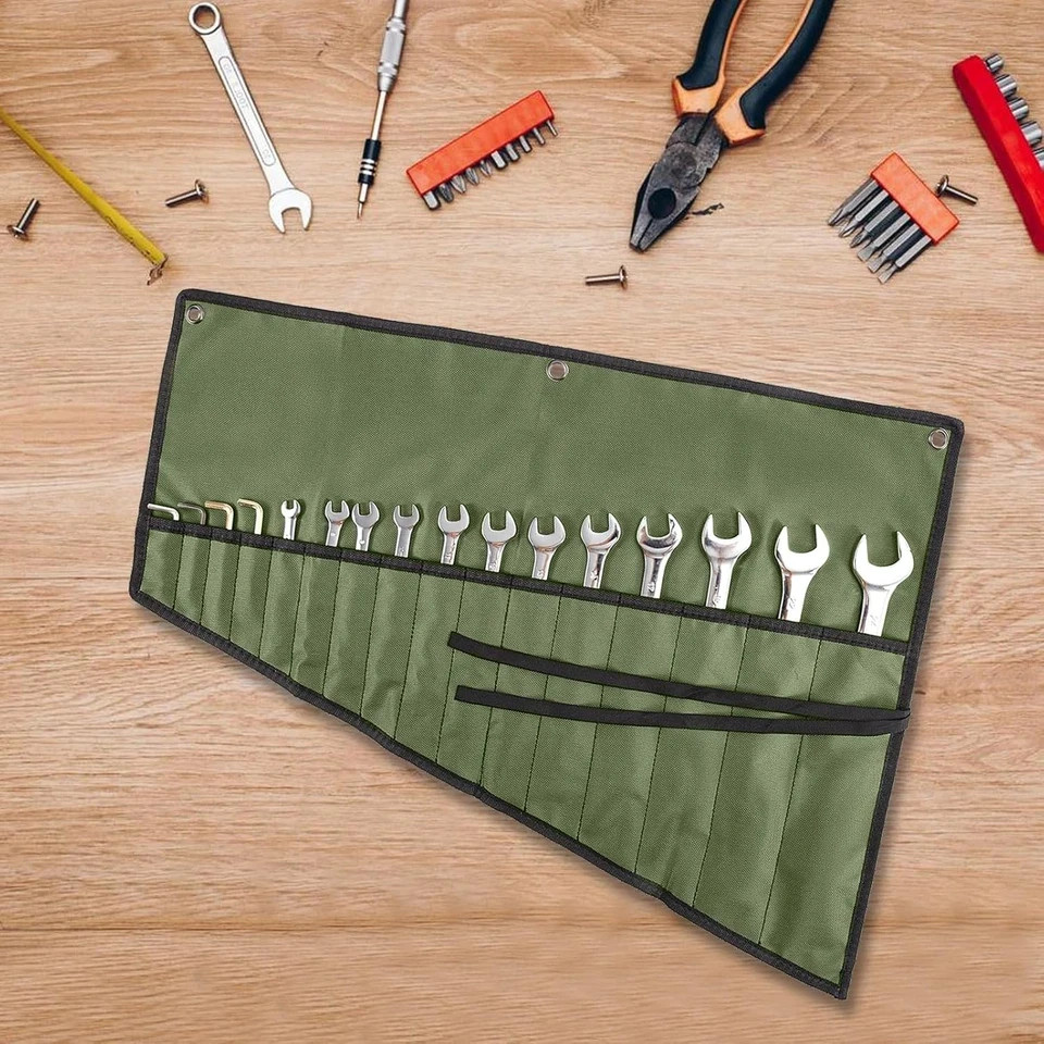16 Pocket Wrench Organizer Tool Roll Heavy Duty Portable Tool Storage