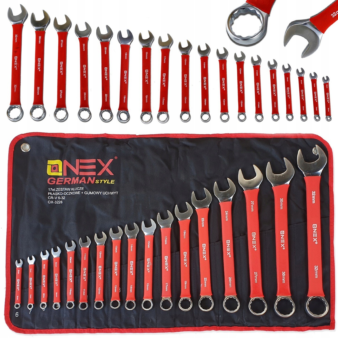 17 Pcs Combination Wrench Set 6-32mm Metric Spanner Kit Automotive Garage Tools