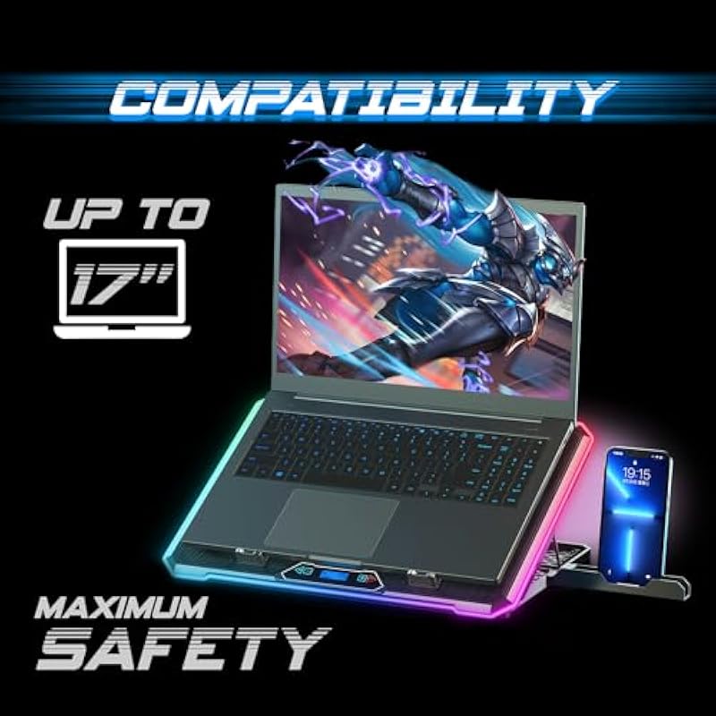 17″ Portable Refrigerator, RGB Ergonomic Laptop Stand, 13 Fans Included