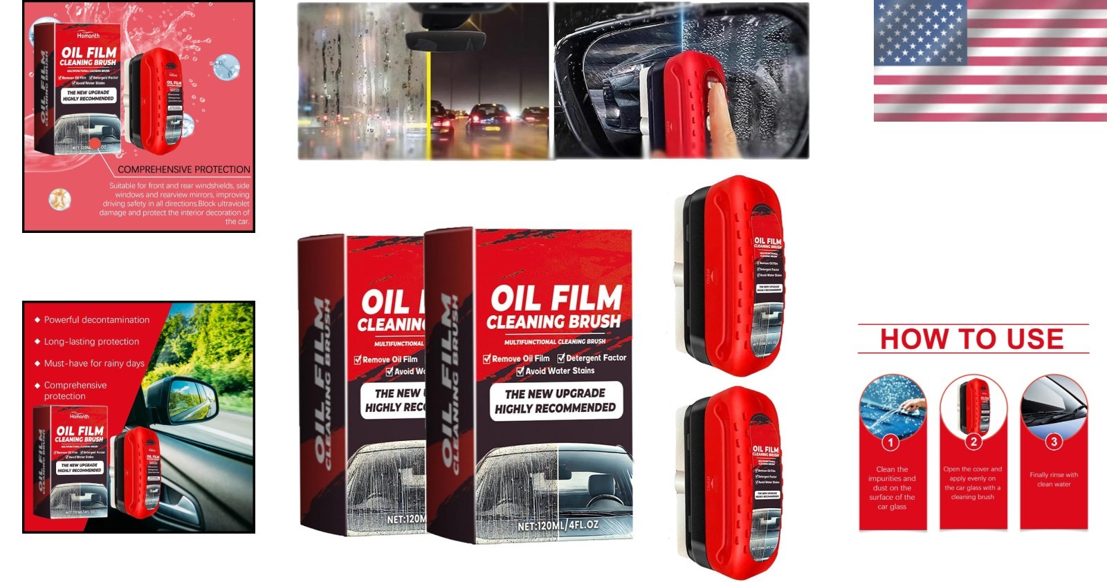 Easy Grip, Hydrophobic, Waterproof, Streak-Free, Durable Protection, Anti-Fog Protection, Effortless Cleaning, Integrated Liquid Brush, Simple Wipe, Strong Clarity, Visibility Improvement, Easy to Use