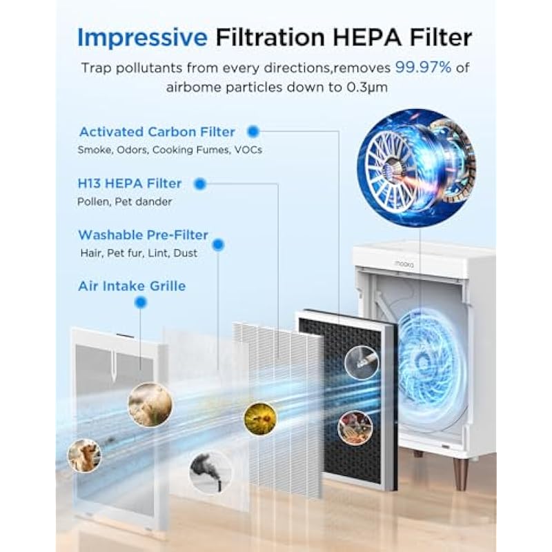 - 【Smart Filter Replacement Reminder】MOOKA HKB320F air purifier will remind you when it’s time to change the filter.We recommend replacing air filter every 6-8 months for best results.
