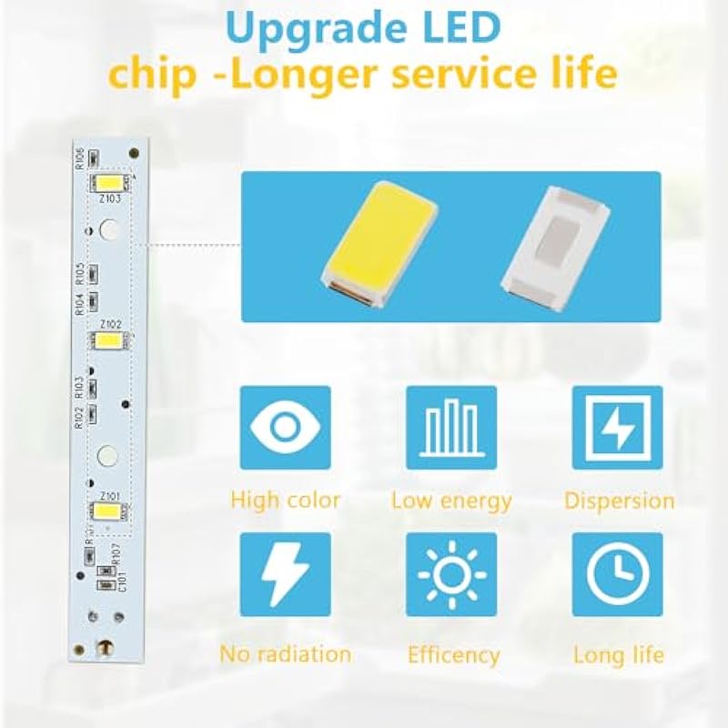 - Premium Quality LED Board: Equipped with 3.5-5W high-quality LED beads that produce bright, energy-efficient lighting. The triple-proof paint coating ensures durability and resistance to damage, extending the lifespan of your fridge’s interior light.