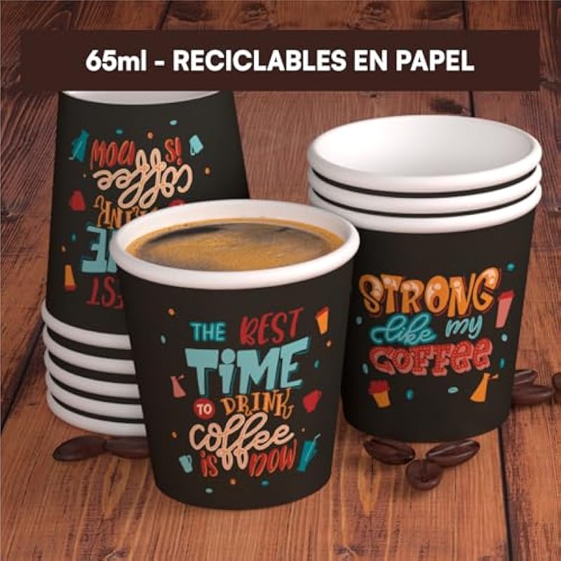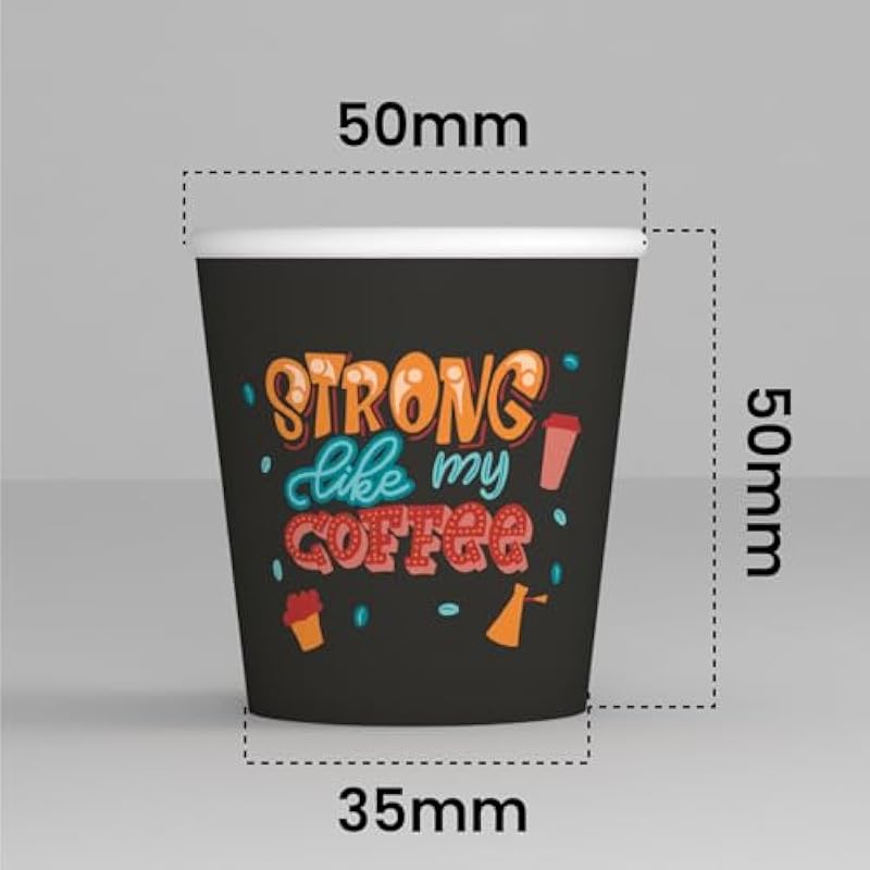 - Features: Disposable cups are perfect in the company, in the office, at the bar or on the go, at the hotel and at home. The measurements are: 50mm top diameter, 35mm bottom diameter, 50mm height, and contains 65ml of beverage, ideal for espresso, long, stained…