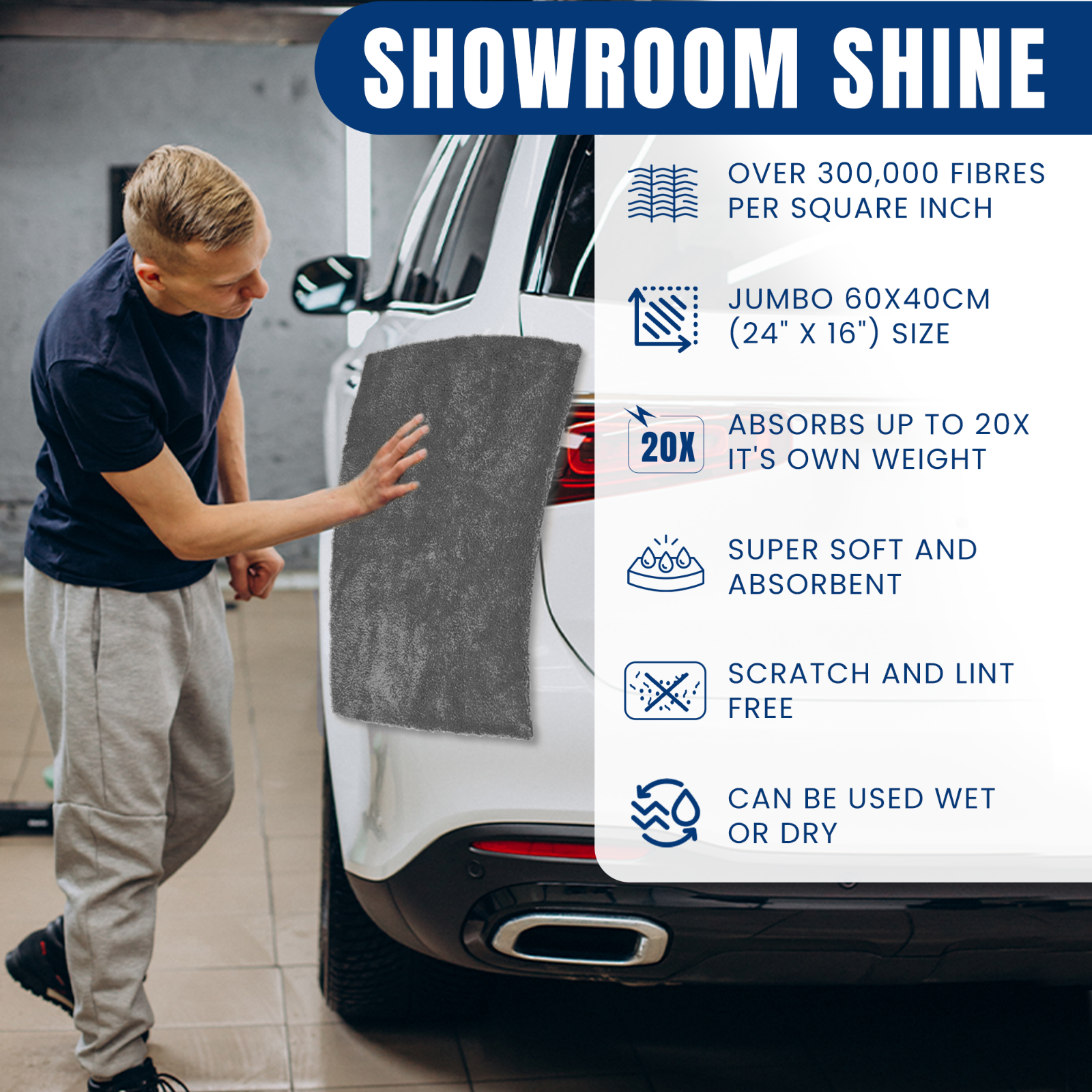 2x Microfibre Car Drying Towel XL Super Absorbent Large Edgeless Detailing Cloth