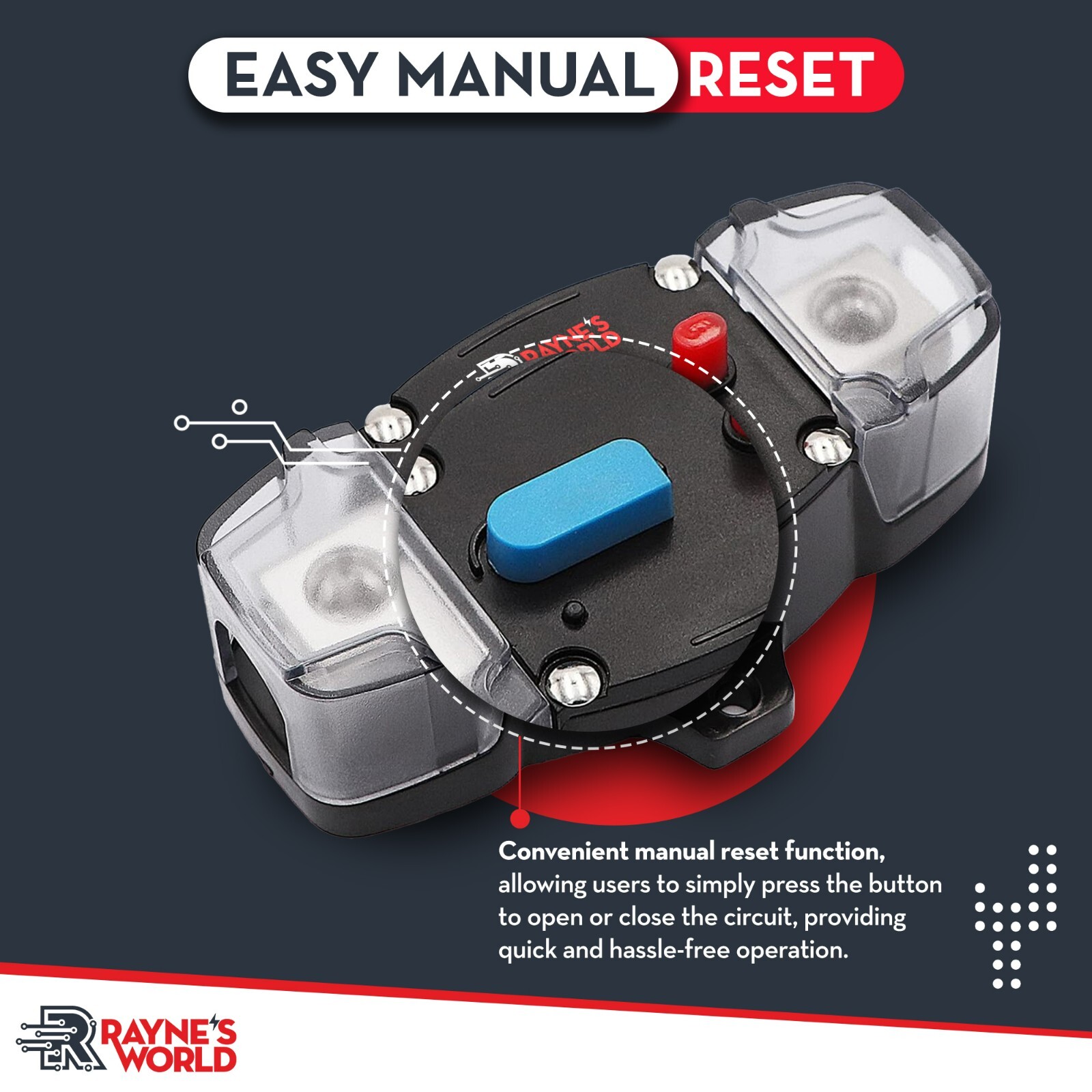 30-250 Amp 12-48V DC [0-8 AWG] Inline Breaker with Dust Cover Auto/Solar/RV