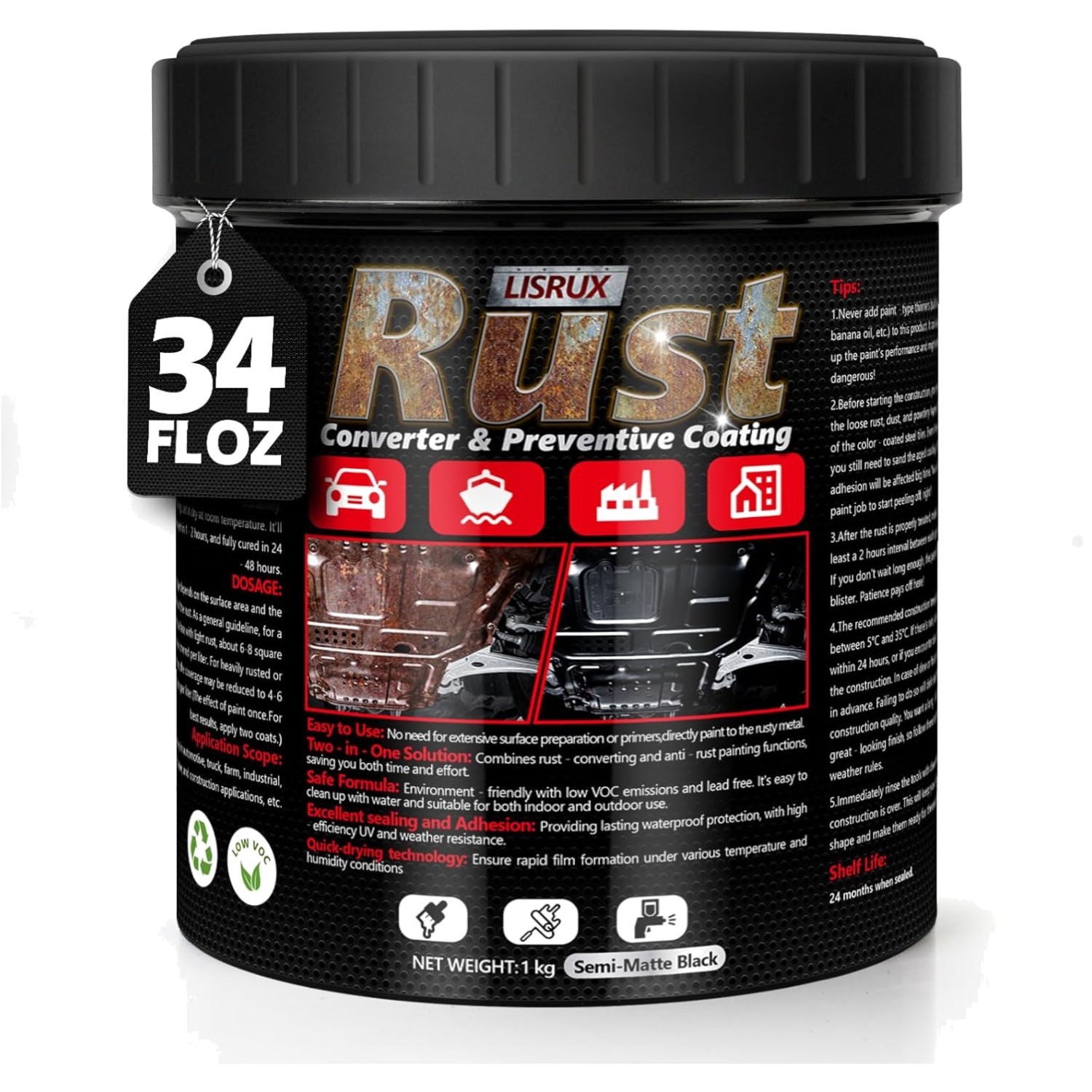 Be the first to review “4-In-1 Rust Converter & Metal Primer, 34 Fl Oz Black Rust Inhibitor Paint for Me” Cancel reply