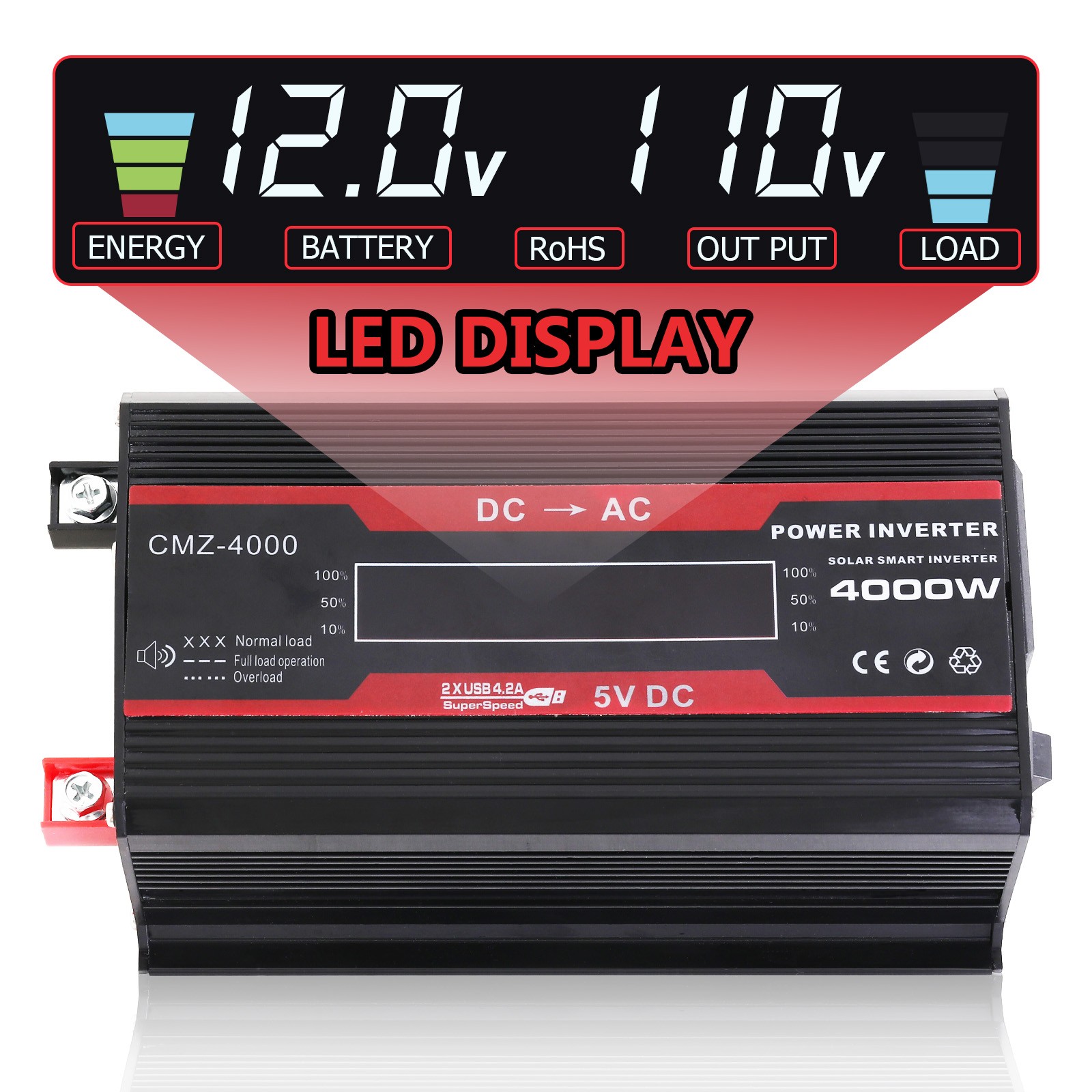 4000W Car Power Inverter DC 12V to AC 110V LCD