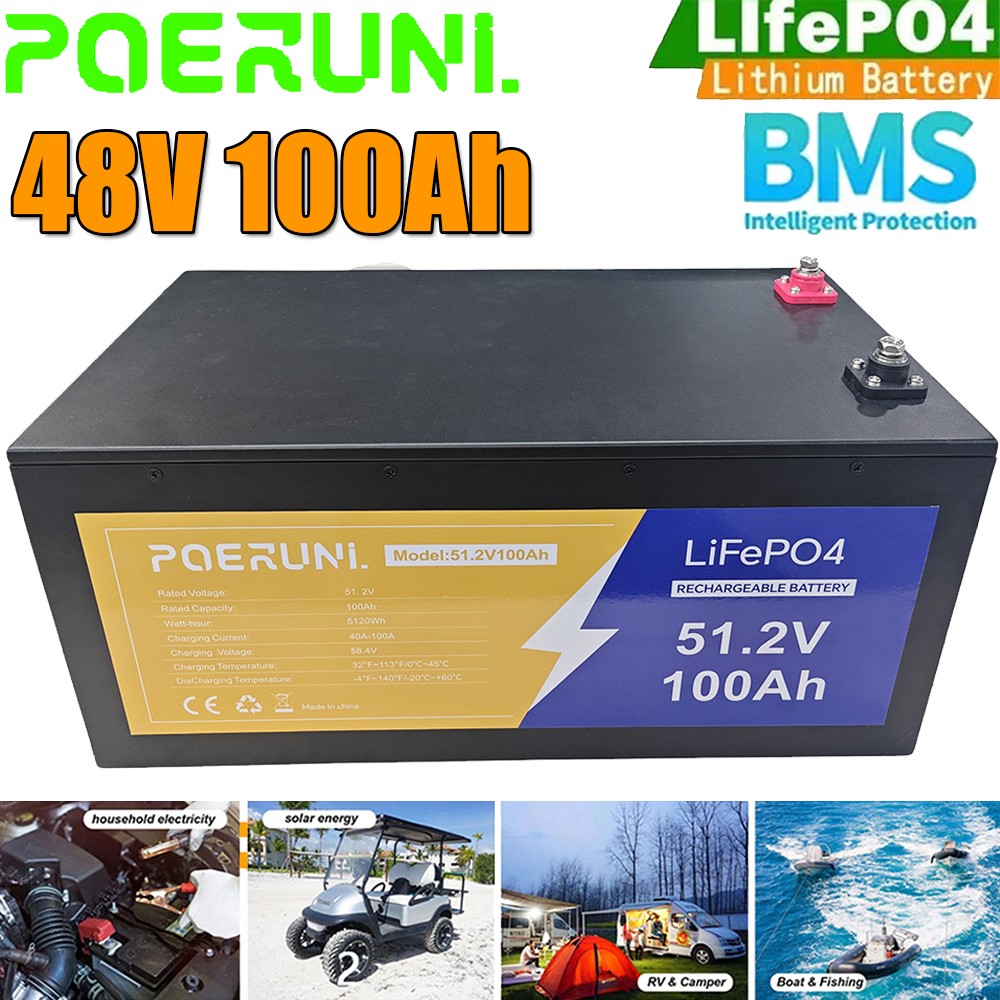 48V 100Ah LiFePO4 Lithium Battery Built-in BMS Deep Cycle For Golf Cart Marine
