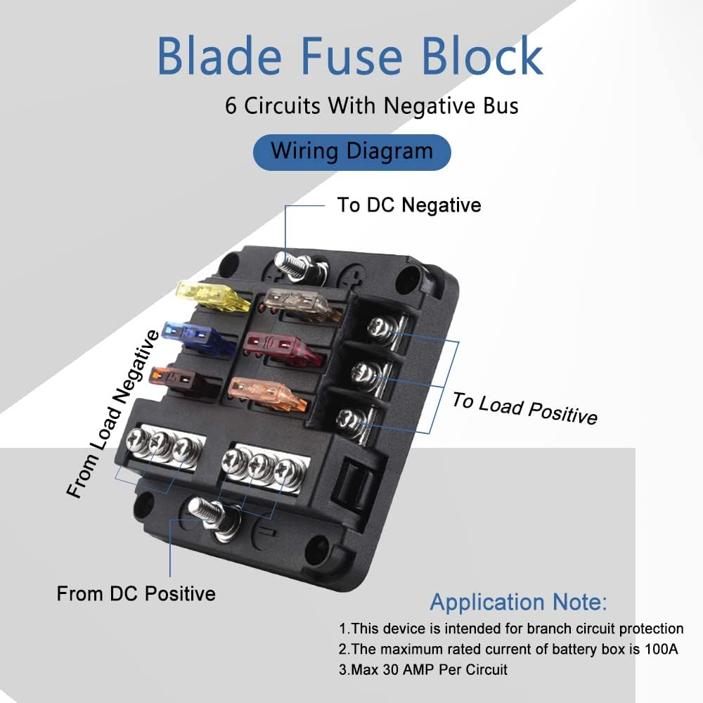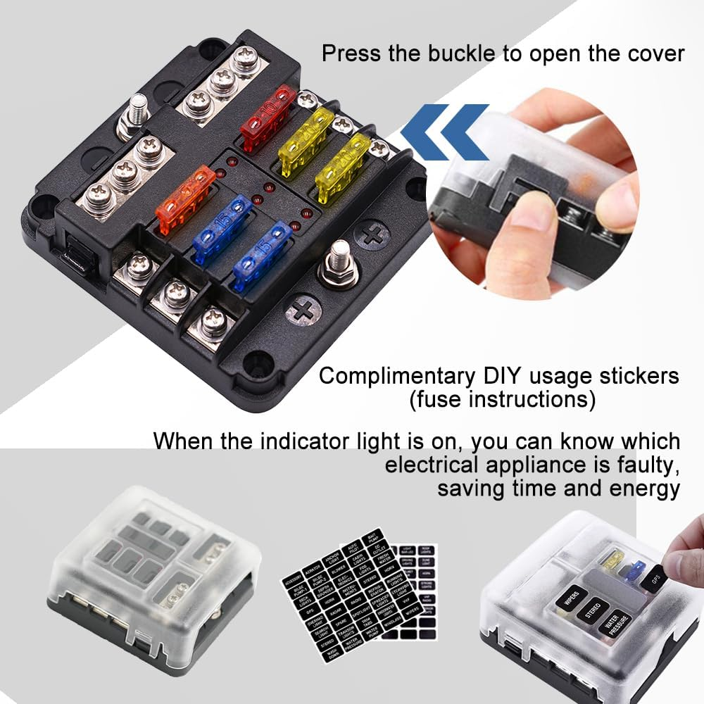6-Way Marine Fuse Block,Waterproof 12V Fuse Block with LED Indicator, Automotive