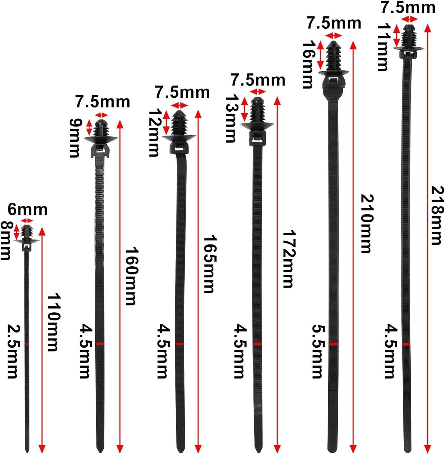 60 PCS Push Mount Zip Ties – Nylon Cable Clips for Automotive Wire Harness, 6 Ty