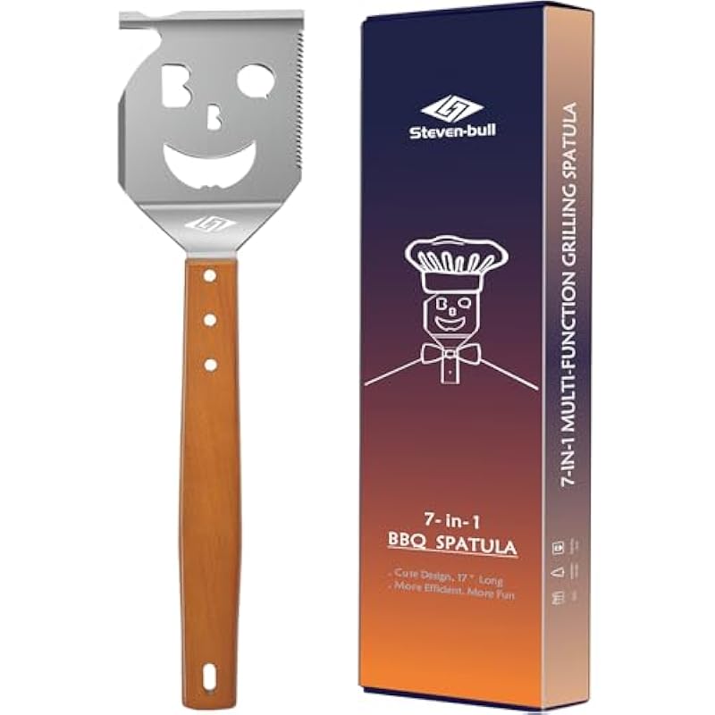 7 in 1 BBQ Spatula with Scraper, 17 inches long, Built-in grill tool set functionality.More efficient and more fun.Perfect gifts for men.