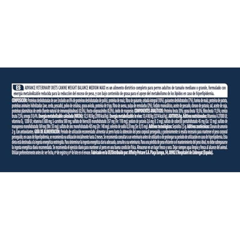 Advance Veterinary Diets Weight Balance Medium & Maxi, Food for Dogs with Overweight Problems, 3 kg