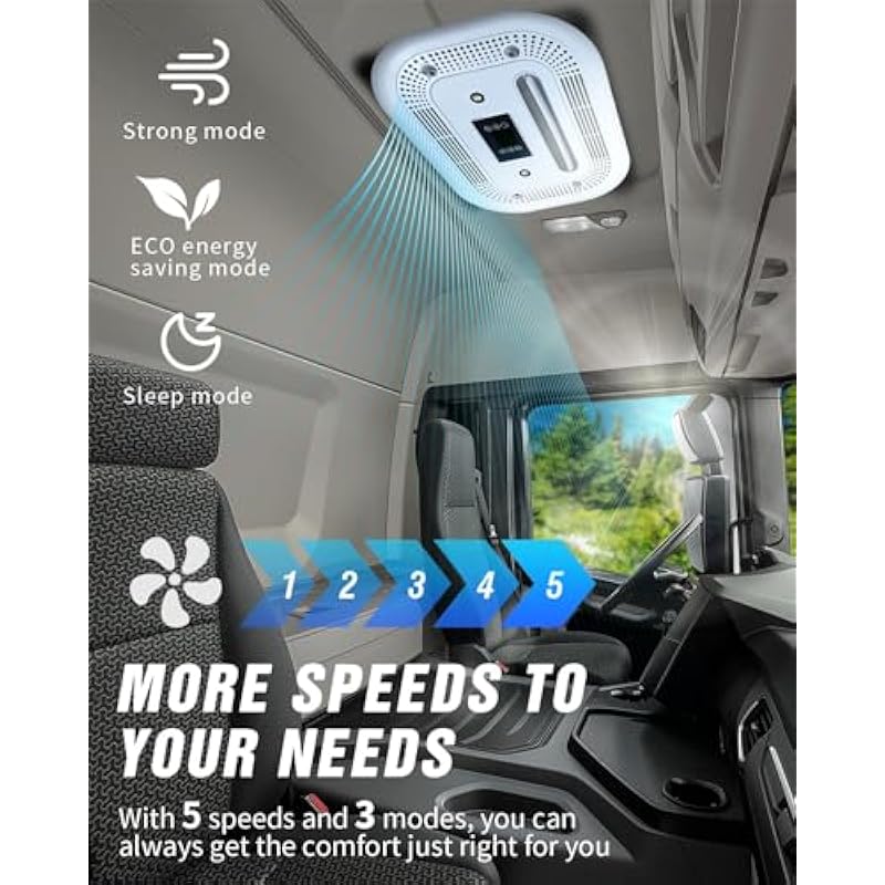- 5 adjustable air flow levels (speed 1: low rotation fine wind mode ~ speed .5: large air volume circular mode)