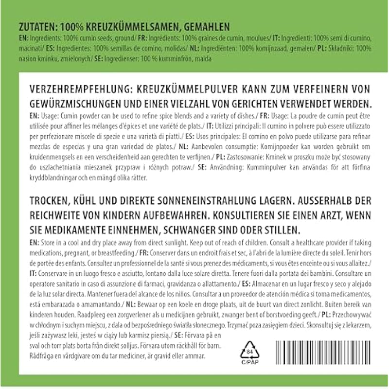 - AUTHENTIC FLAVOR – Our cumin powder, made from carefully dried and ground cumin seeds, is a single ingredient product of natural origin. It is naturally vegan and contains no gluten, additives, preservatives or flavorings.