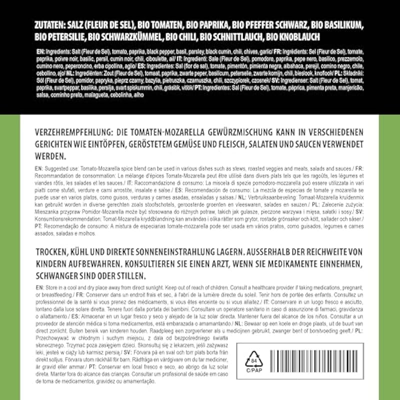 - AUTHENTIC FLAVOR – Our tomato mozzarella seasoning is made with carefully dehydrated herbs and spices to preserve their natural flavor and aroma. It is naturally vegan and contains no gluten, additives, preservatives or flavorings.