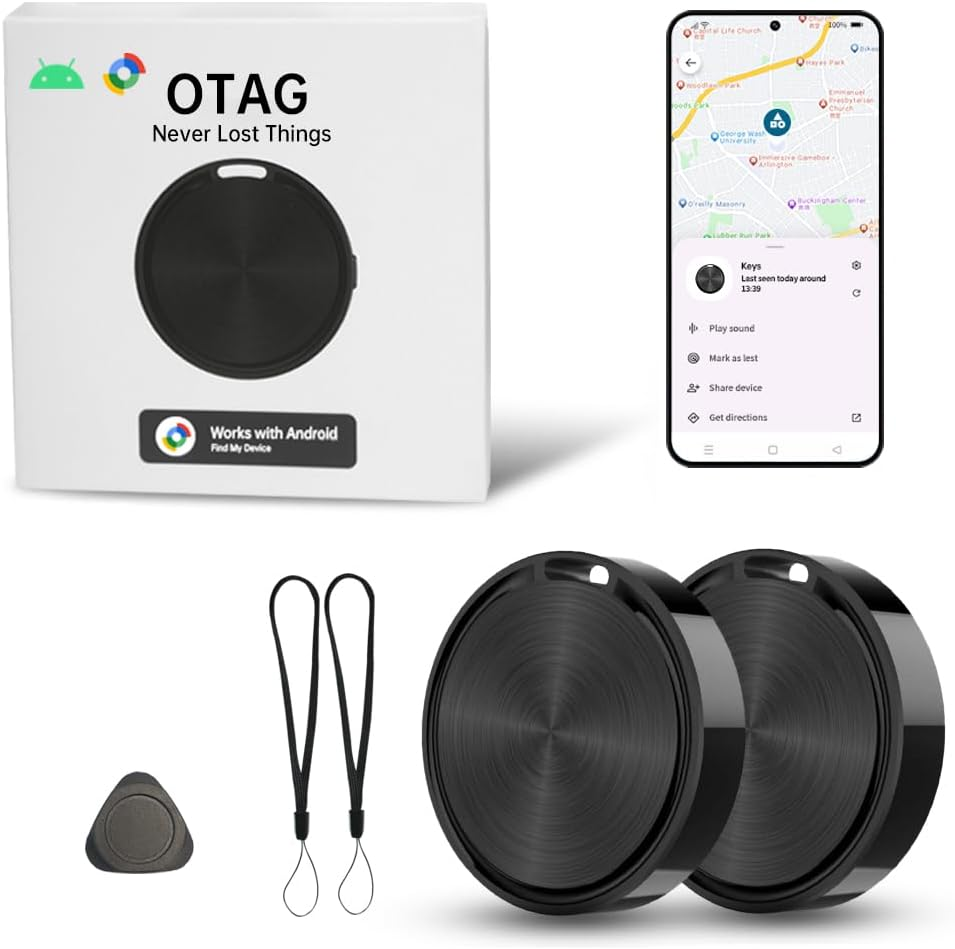 Android Tracker Tags 2 Pack, Smart Tag for Google Find My Device App (Android On