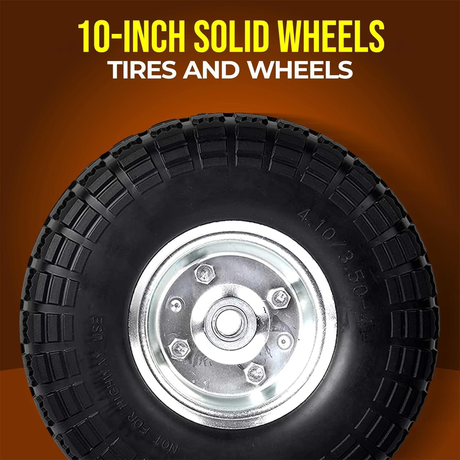 AR-PRO (2-Pack) 10-Inch Solid Rubber Tire Wheels – Replacement 4.10/3.50-4″ Flat