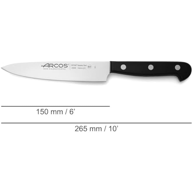 Arcos Chef Knife Stainless Steel Professional Kitchen Knife for Cutting a Variety of Foods Ergonomic Handle Polyoxymethylene Blade 175 mm Universal Series Black
