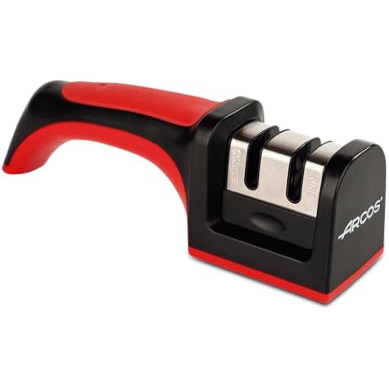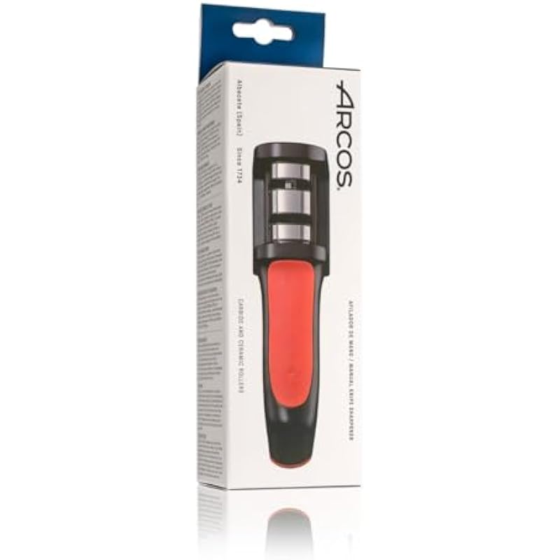 Be the first to review “ARCOS Professional Sharpener with Ergonomic Handle Manual Use for Sharpening and Polishing Knives, Ceramic and Carbon Rollers, Red and Black” Cancel reply