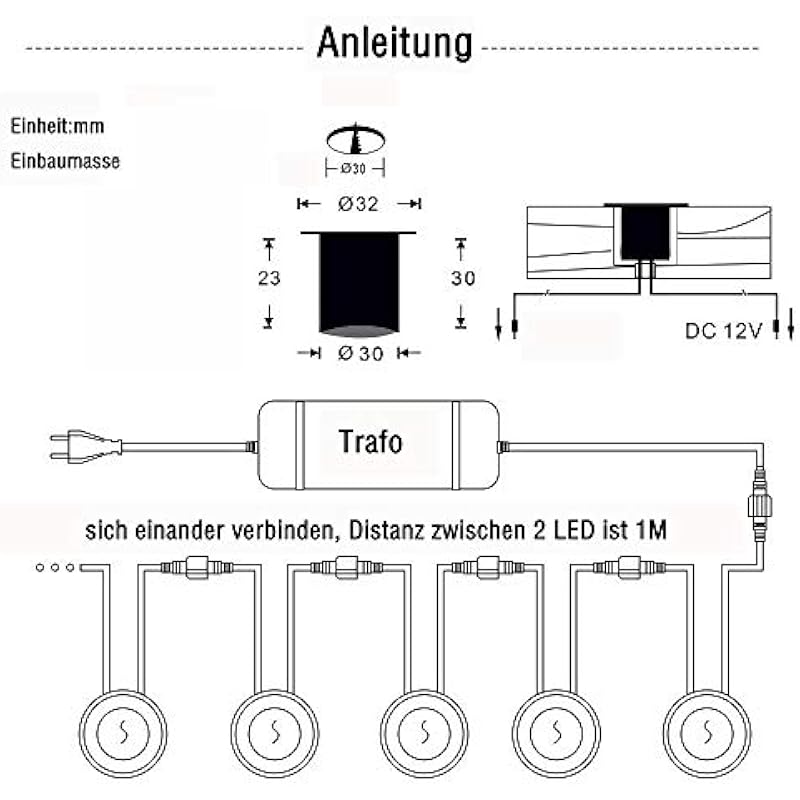 | Included Components | 16 x LED Treppen-light, 16 x Schwarze Schale, 1 x Power Supply, 1 x Connection (Deutsch) |