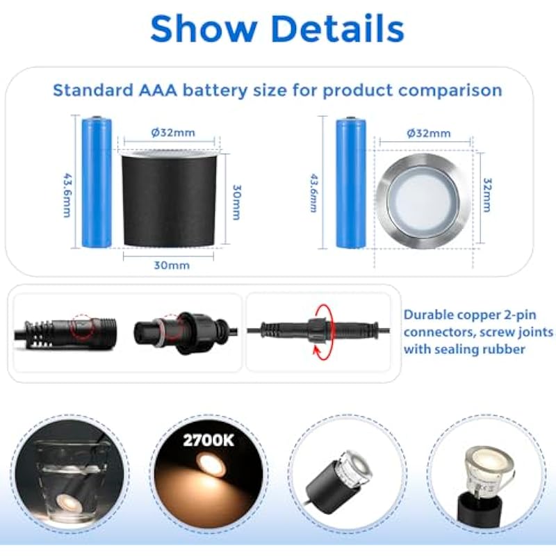 - 🌹 【Easy Installation】 Each lamp has 0.5M dual wires and can be connected together. The distance between 2 lights is 1 meter. The 16 lamps are separable and parallel, you can freely choose the number of installations required. The power supply is included in the scope of delivery and can be easily installed without additional accessories.