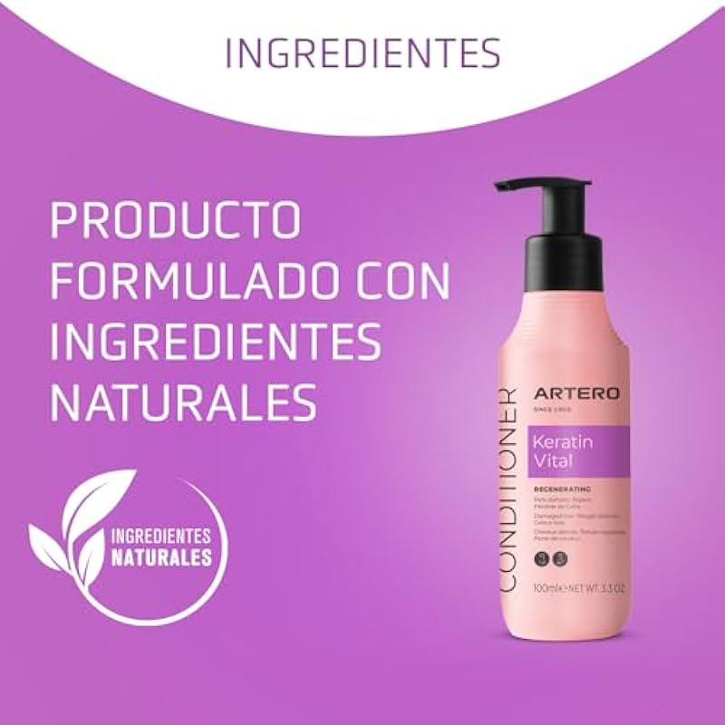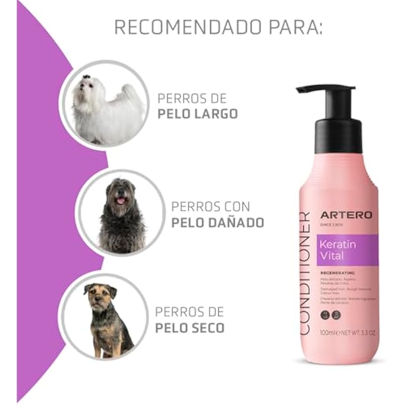 Artero Keratin Vital Conditioner for Dogs and Cats – Recovers Softness and Shine of Natural Hair – Detangling, Moisturizing and Regenerating – Ideal for Long Hair and Dry Cloths (100ml)