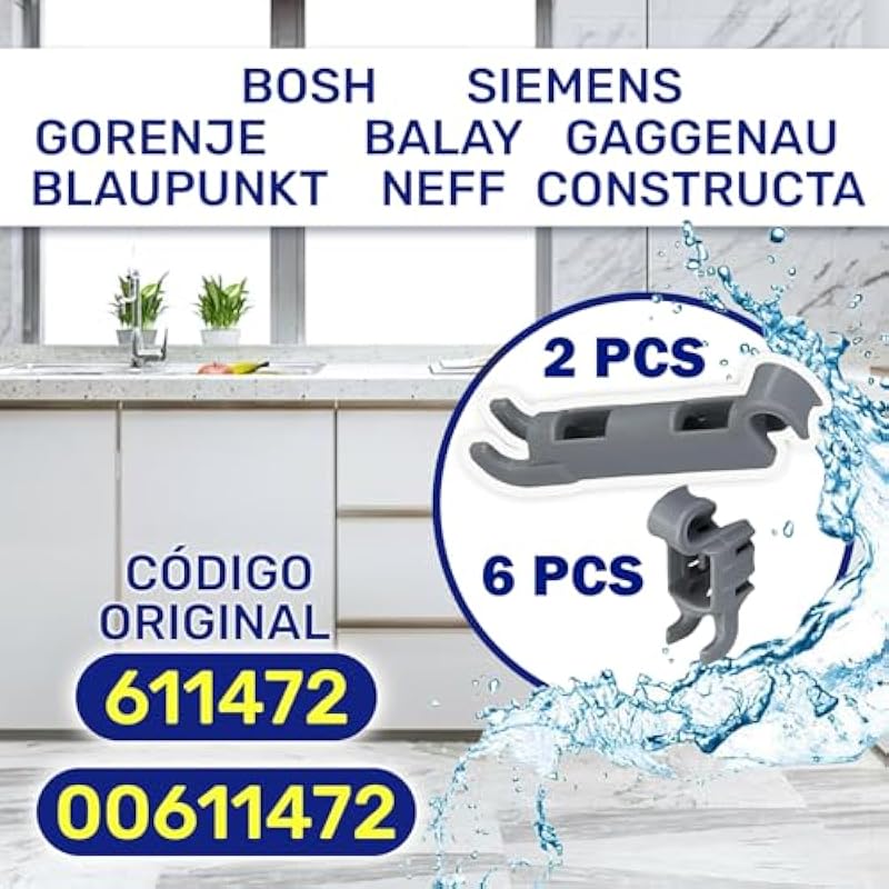 Bearing Kit Hooks 00611472 611472 for Dishwasher Lower Tray for Bosch or Siemens 8 Parts Dishwasher Spare Parts 10 Year Warranty – Monteral