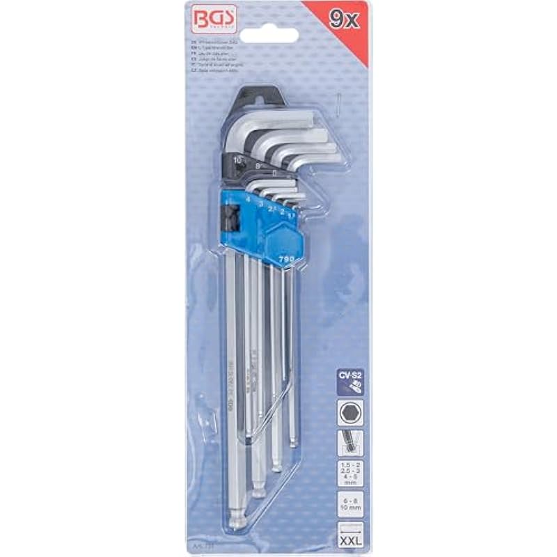 BGS 808 | Allen Key Set | Extra Long | Inner Hex 1.5 – 10 mm | 9 Pieces