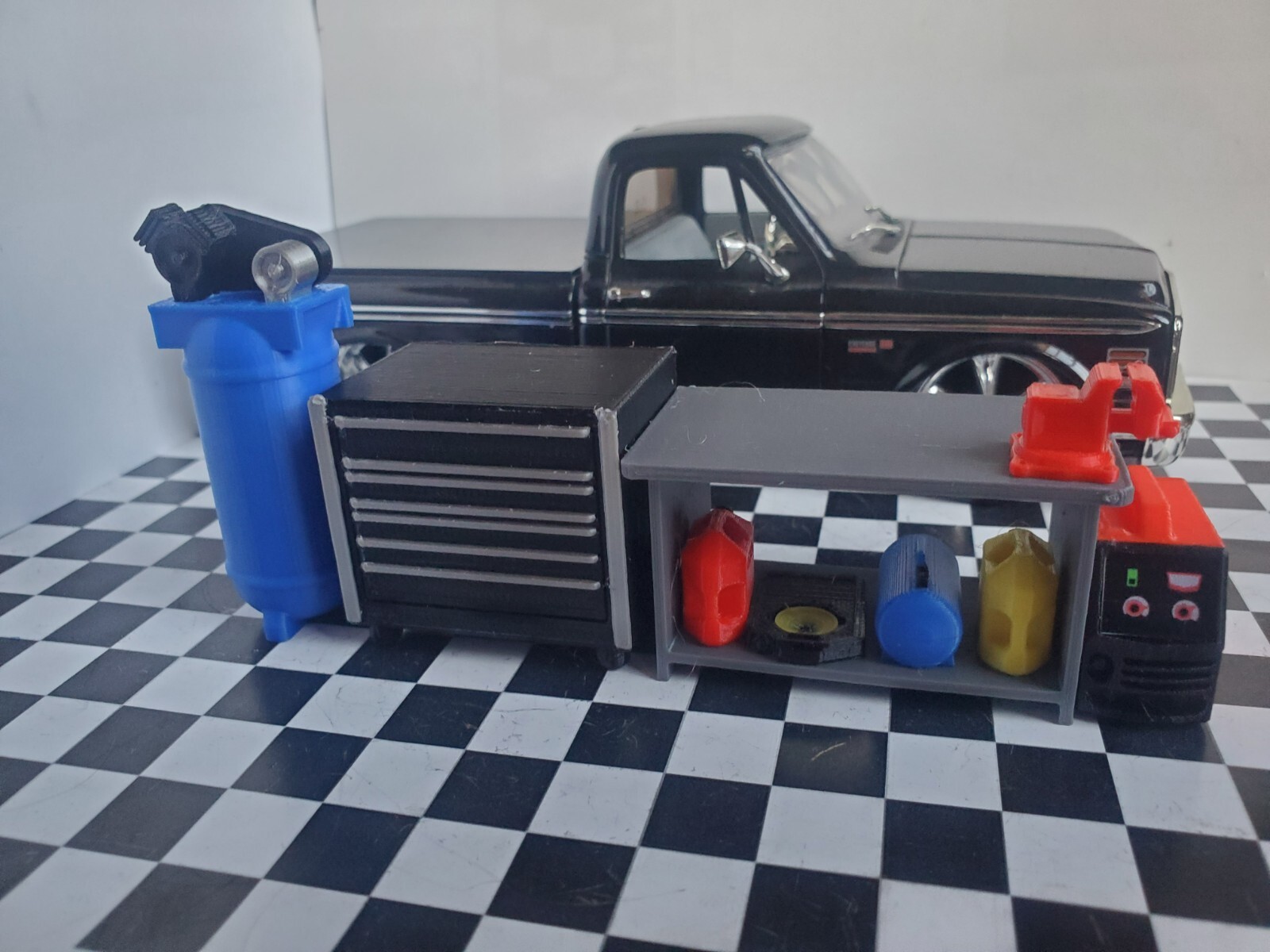 Black Tool Box Workbench Oil Pan Gas Compressor 1/24 1/25 Scale Garage Diorama