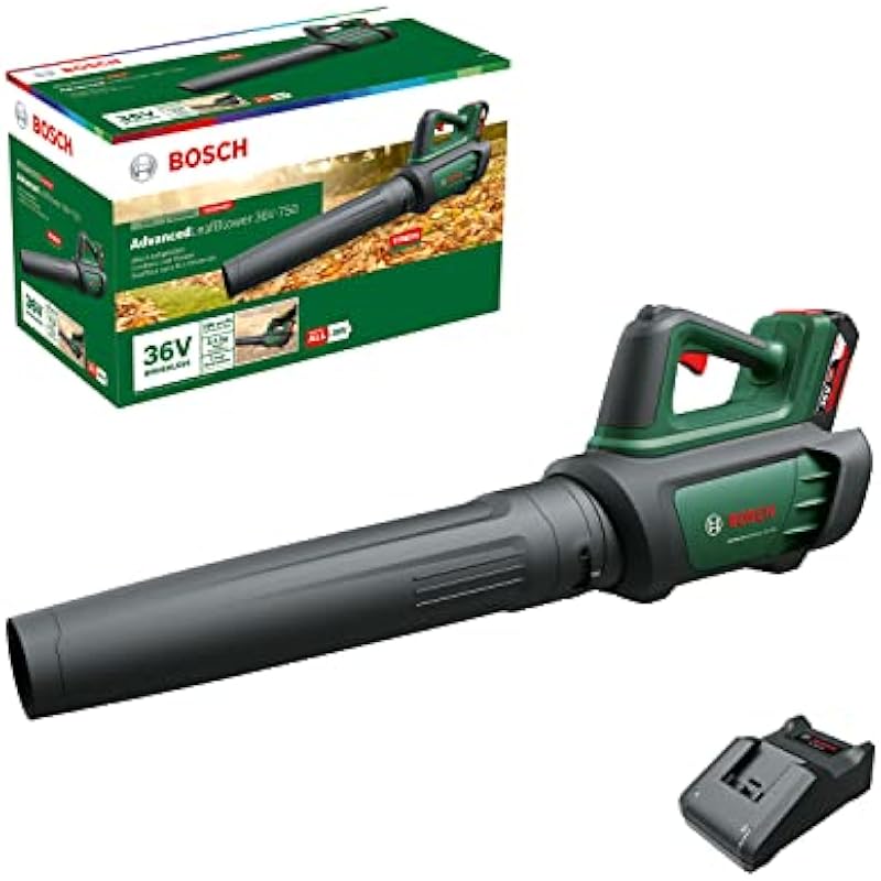 Bosch AdvancedLeafblower 36V750 Leaf Blower (2.0 Ah Battery, 36 Volt System, for Removing Unruly Leaves in Large Areas, Weight: 3.5 kg)