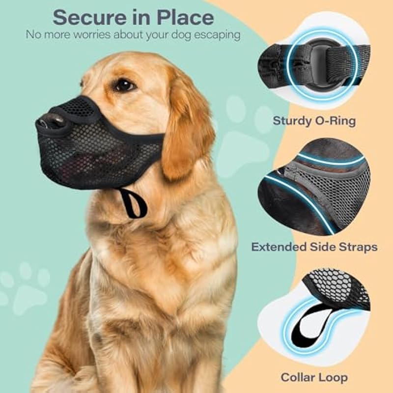 Breathable Nylon Mesh Dog Mouth Muzzles, Muzzle for Large Dogs, Anti Barking Muzzle (Black-XXL)