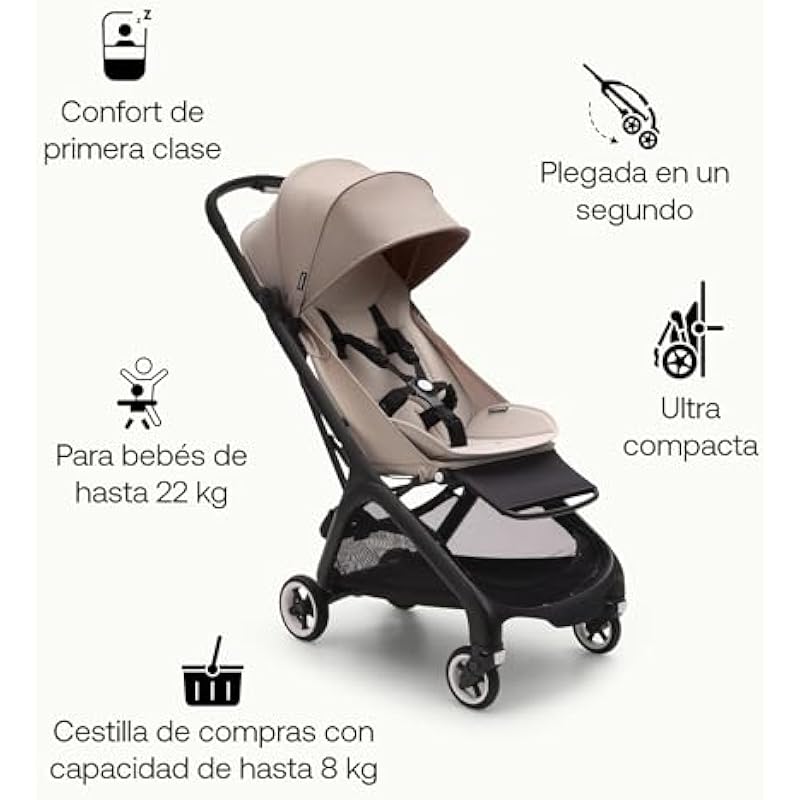 Bugaboo Butterfly Stroller Travel Stroller, Ultra-Compact, Small and Lightweight, Easy to Fold in 1 Second, Urban Stroller for Babies and Kids, Spacious with Comfortable Steering, Black/Midnight Black