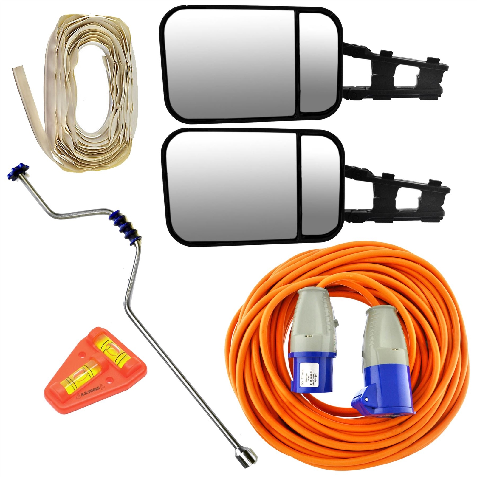 Caravan Towing Mirrors Leg Winder Electric Hook Up Spirit Level Awning Rail