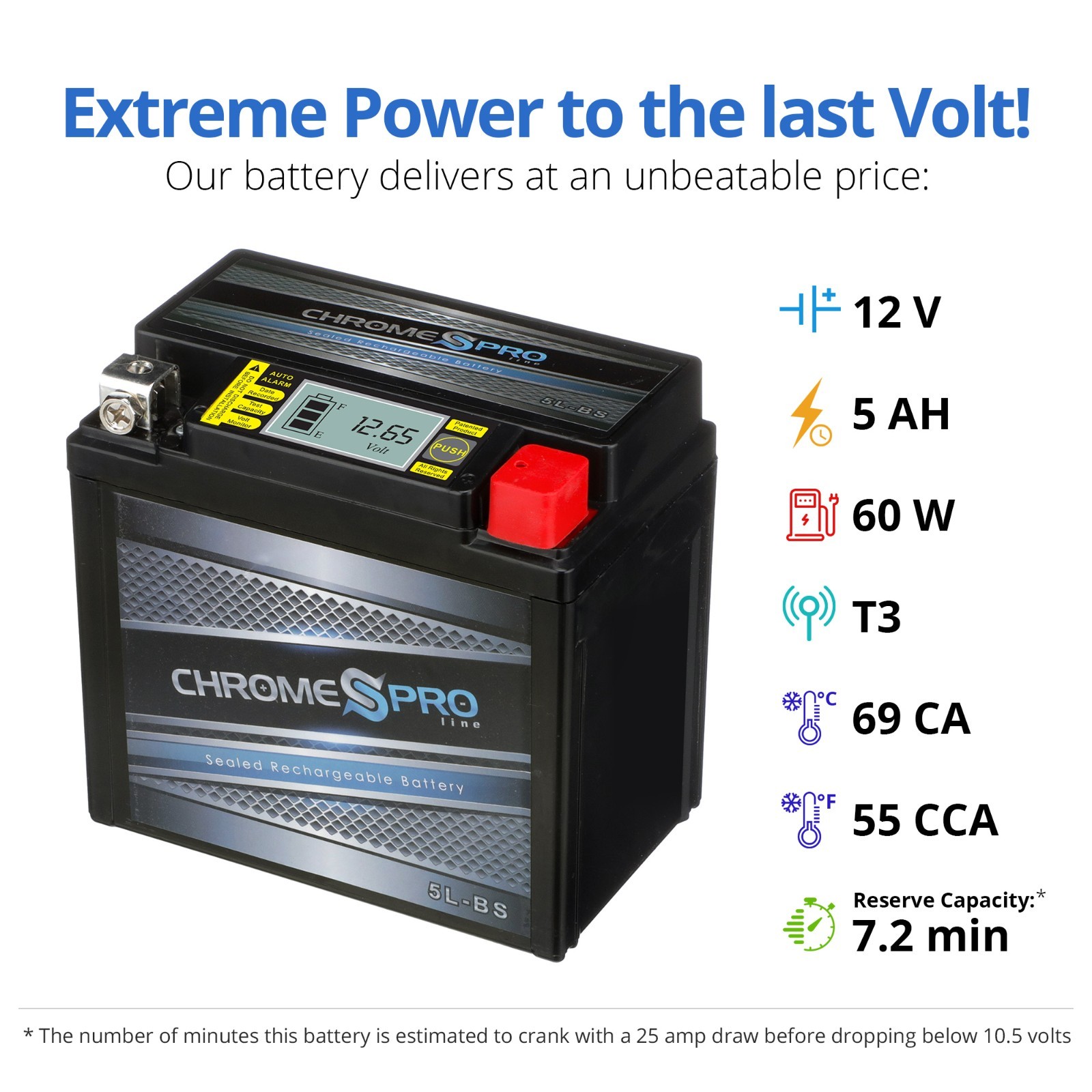 Chrome YTX5L-BS High Performance Maintenance Free Sealed iGel Motorcycle Battery