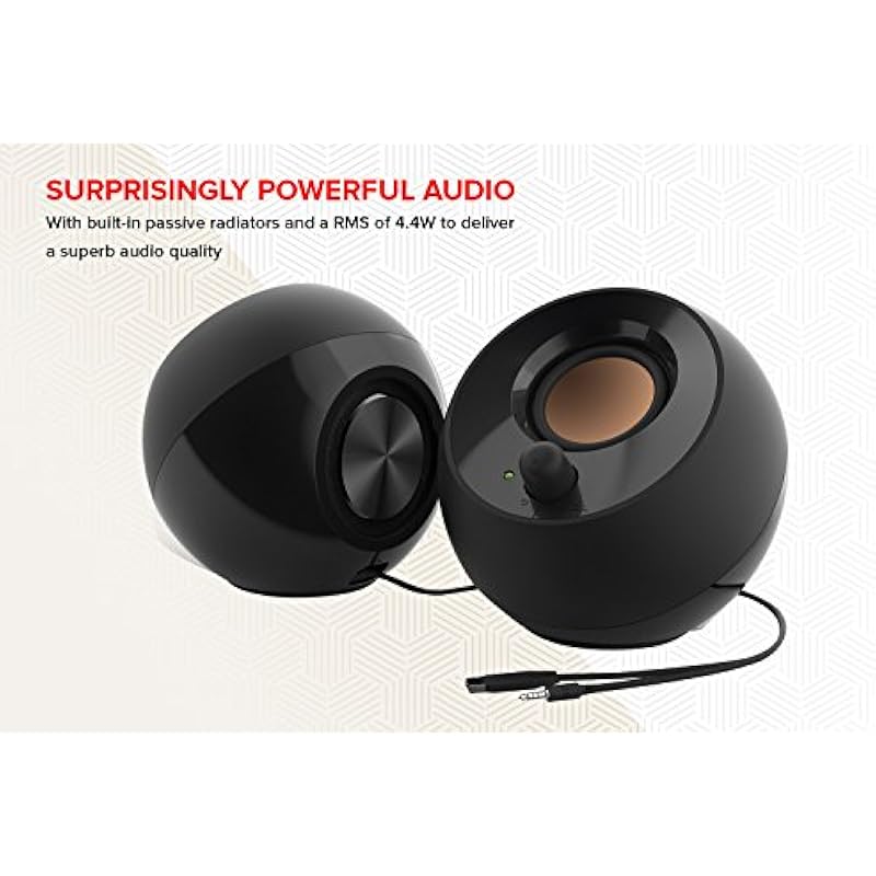 Creative Labs Pebble 4.4W Black Speaker – Speakers (2.0 Channels, Wired, 3.5 mm, 4.4 W, 100 – 17000 Hz, Black)