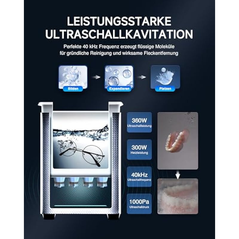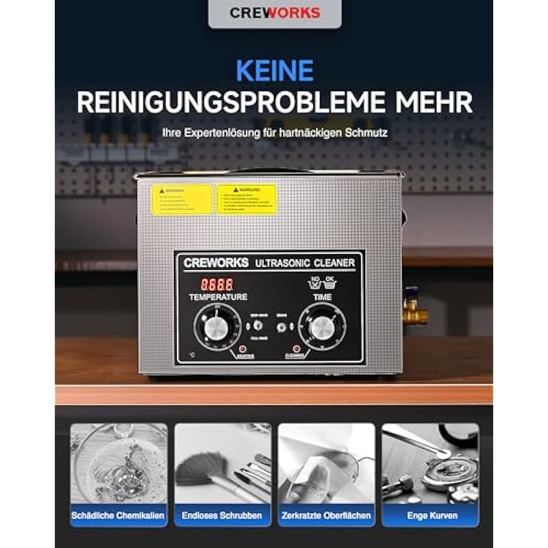 CREWORKS 6.5L 180W Professional Ultrasonic Cleaner with Heater and Timer Stainless Steel Ultrasonic Cleaner Ultrasonic Cleaning Machine for Jewelry, Watch and Glasses (6.5L)