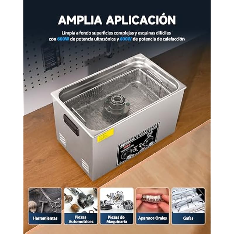 CREWORKS 6.5L 180W Professional Ultrasonic Cleaner with Heater and Timer Stainless Steel Ultrasonic Cleaner Ultrasonic Cleaning Machine for Jewelry, Watch and Glasses (6.5L)