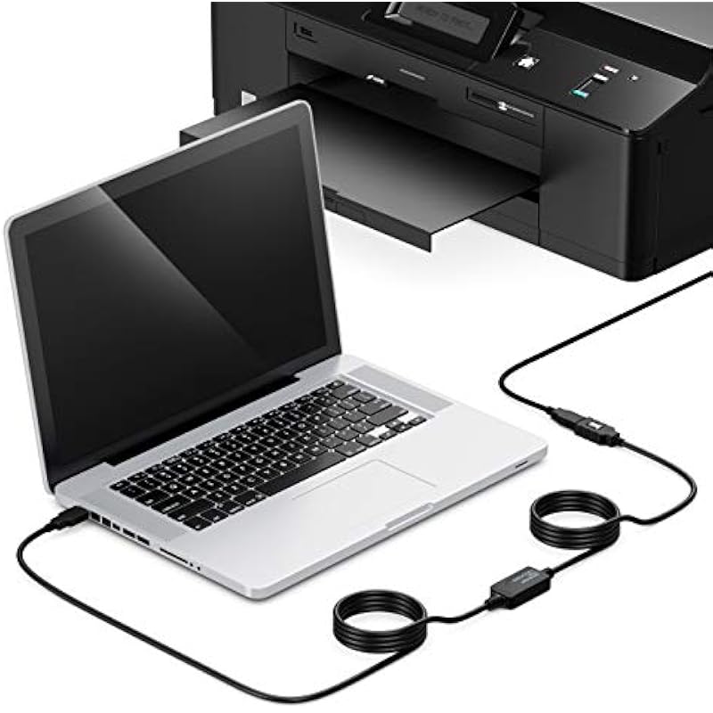 deleyCON 15m Active Extension USB 2.0 with Signal Booster – Repeater Cable for PC, Computer, Printer, Scanner – Black