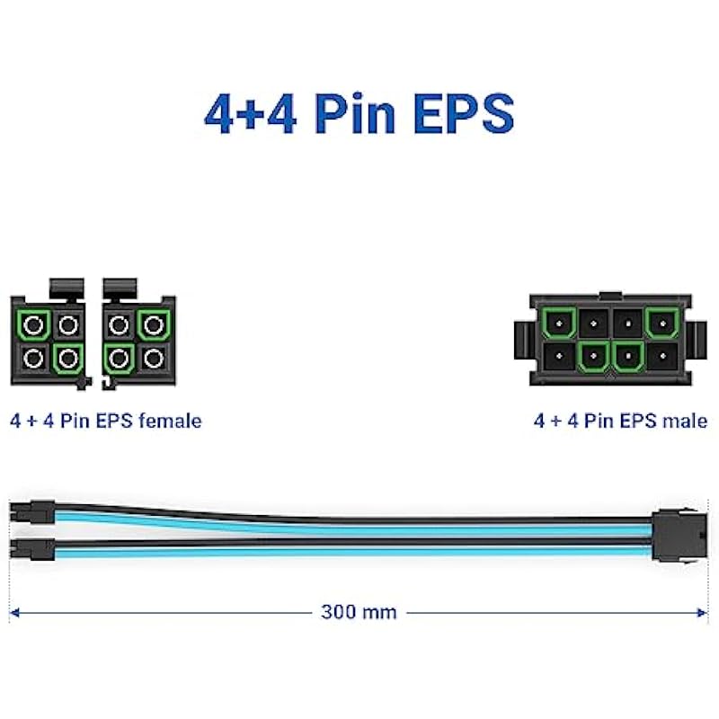 deleyCON 4+4 Pin EPS CPU Processor Power Cable Extension 30cm – 18 AWG PSU Motherboard PC Computer Power Supply Nylon Male to Female – Black Red