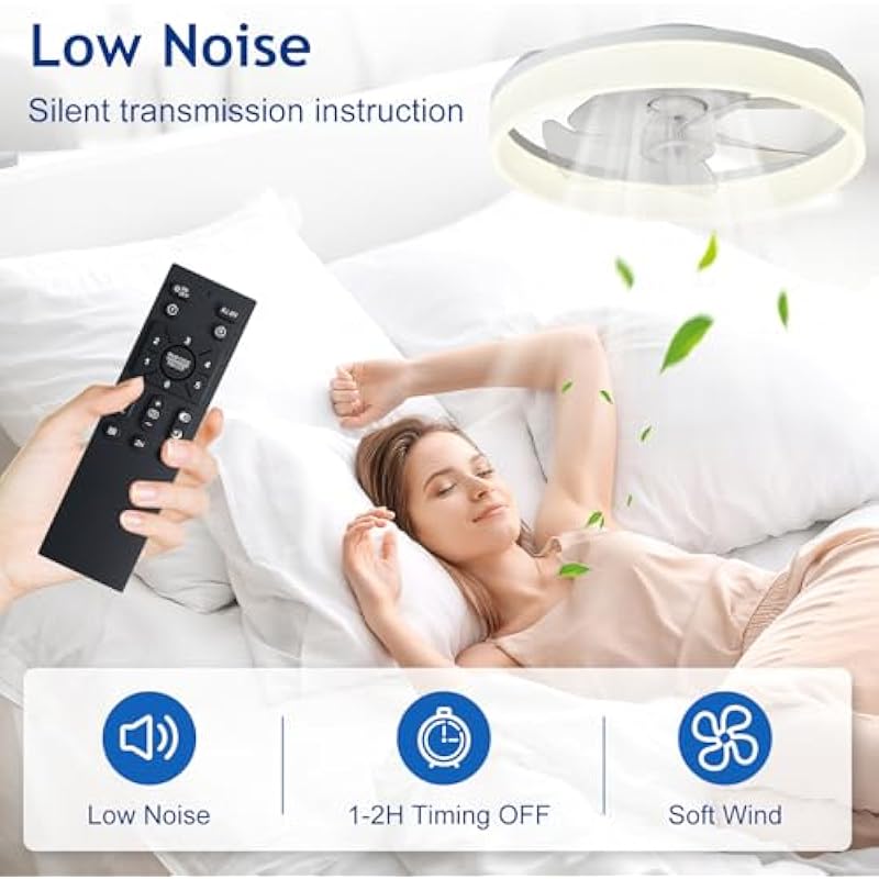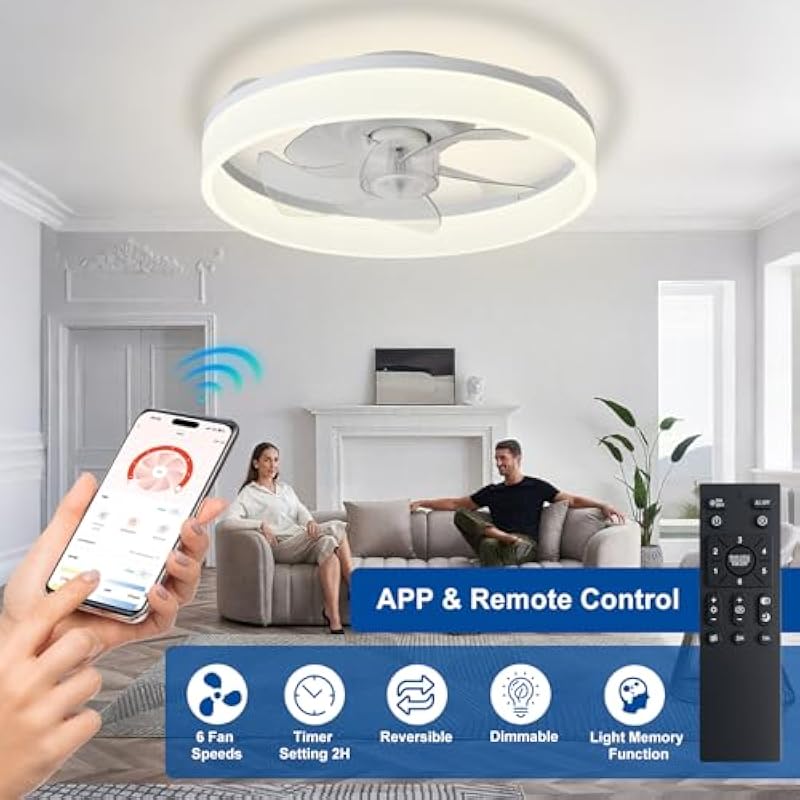 Depuley 16″ Bedroom Ceiling Fan White + Polished Acrylic + LED Light Source [Energy Class F]