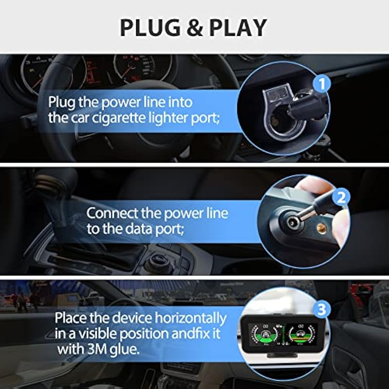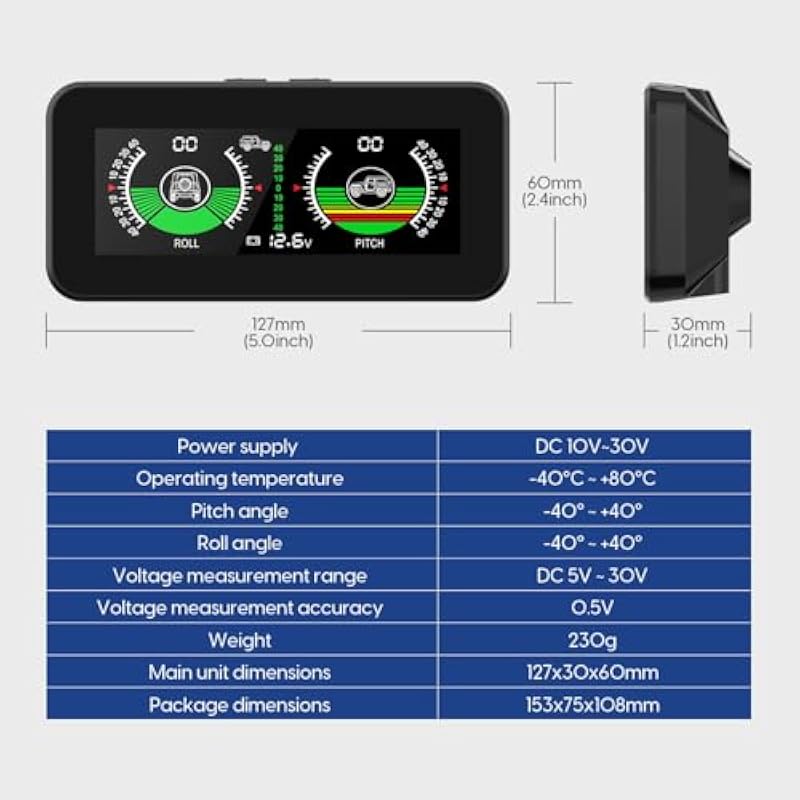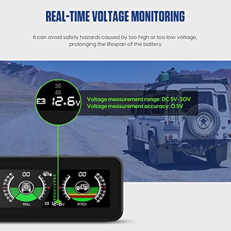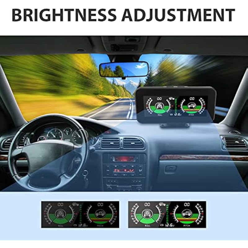 - ADVANCED TECHNOLOGY – The digital inclinometer for cars has a built-in multi-axis gyroscope, which can measure in real time the vehicle’s tilt angle, roll angle and driving speed, thereby improving driving safety and providing a better travel experience.