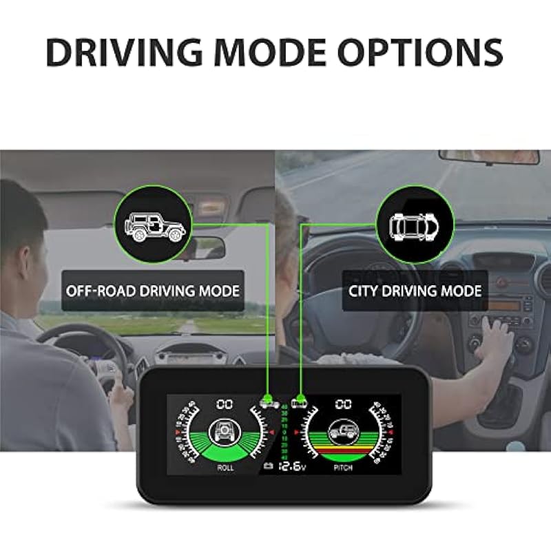 - Driving Mode Selection– The car digital inclinometer has two driving modes (city driving mode and off-road mode), you can choose the driving mode based on driving conditions.It is compatible with 99% of car models on the market. It is completely compatible with vans, trucks, buses, cars, off-road vehicles, SUVs and other vehicles.