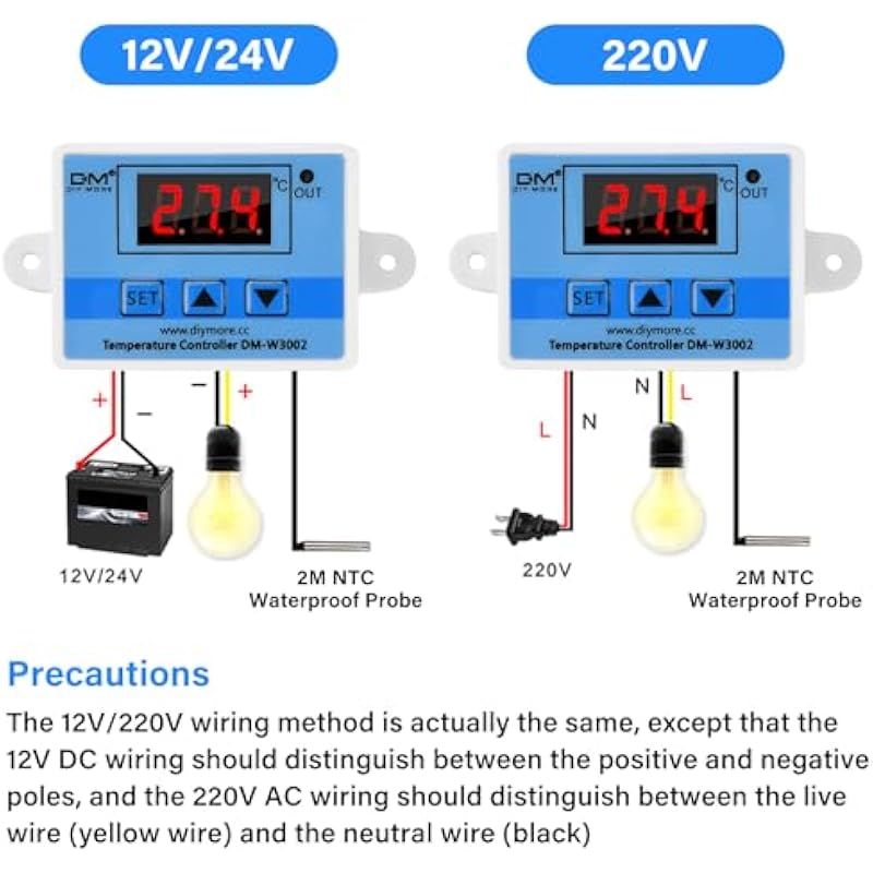 - 【Upgraded 2M Waterproof Probe】Equipped with 2m long stainless steel NTC10K probe, waterproof, not easy to rust, easy to use, durable. Compared with other 1M length lines, the length of 2m meets the requirements of more application scenarios.