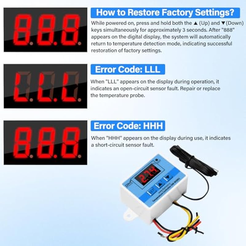 - 【Temperature Rules Range】 Temperature rules range: -50-110℃. Control Accuracy: 0.1°C Input performance: AC 110V-220V The LED display clearly shows the results.