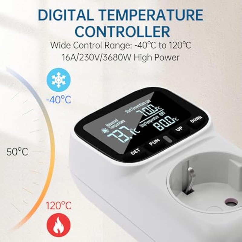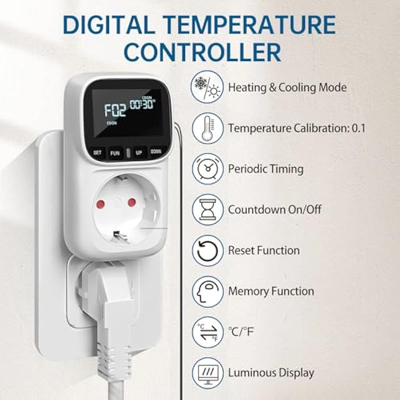- Wide range of applications: ideal for incubators, reptile rooms, radiators, greenhouses, refrigerators, aquarium, fan and oven, where precise temperature and time control is necessary, provides convenient and automatic temperature control.