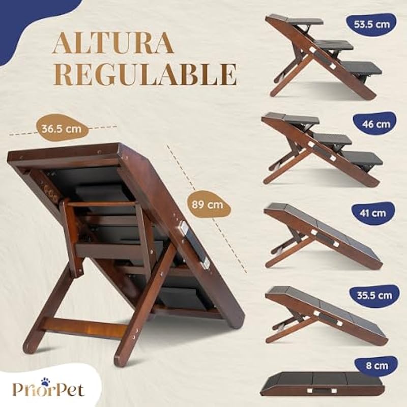 Dog Steps and Ramp 2-in-1 Height Adjustable Ladder/Ramp for Sofa 18-50cm – Pet Steps, Small Dog Steps – with Landing Platform, White