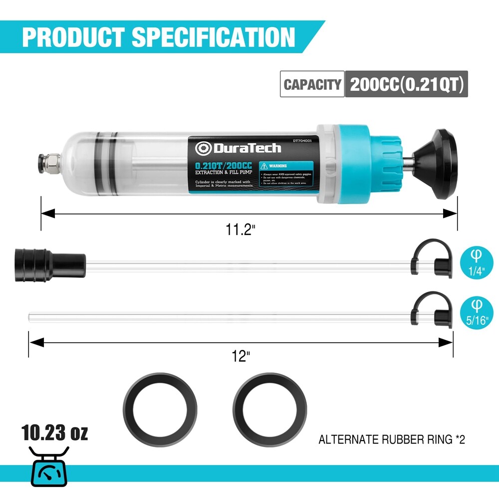 DURATECH Fluid Extraction Filling Syringe Transfer Pump Oil Extractor Automotive